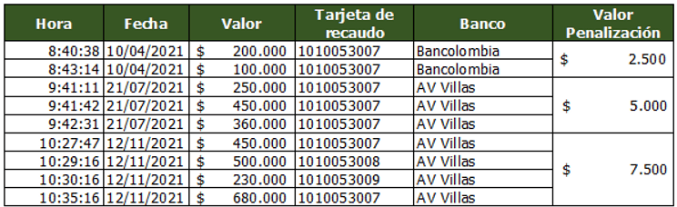 Cada una de las consignaciones realizadas en seguidilla generará una penalización de dos mil quinientos pesos ($2.500). El valor total de la penalización será descontado del saldo del USUARIO el día siguiente de haber realizado las transacciones en seguidilla, situación que será notificada a través de un mensaje en la cuenta de usuario.